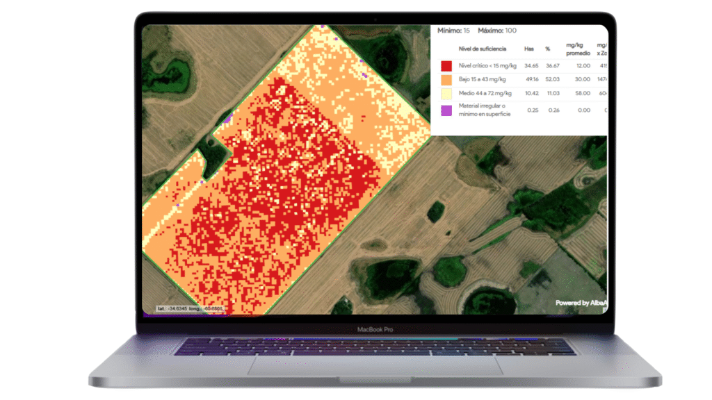 Este mapa muestra la distribución espacial del zinc disponible en el campo, guiando intervenciones estratégicas en zonas donde su deficiencia podría limitar el potencial de rendimiento.